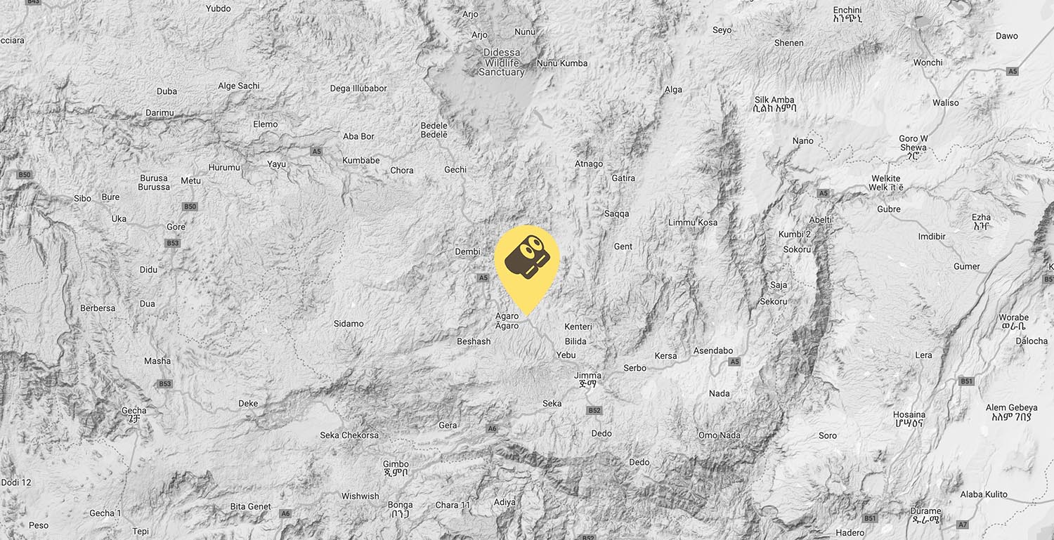 Mustefa Abakeno a élaboré un petit laboratoire directement sur sa ferme et a engagé un agronome afin de produire un café light honey (fermentation 8h et séchage sur «african beds») exceptionel. Située à 2040 mètres d’altitude près d’Agaro, sa ferme abrite des variétés locales issues du centre de recherche de Jimma. Mustefa vend ses cafés sans intermédiaire local depuis 2018, assurant une traçabilité exceptionelle.